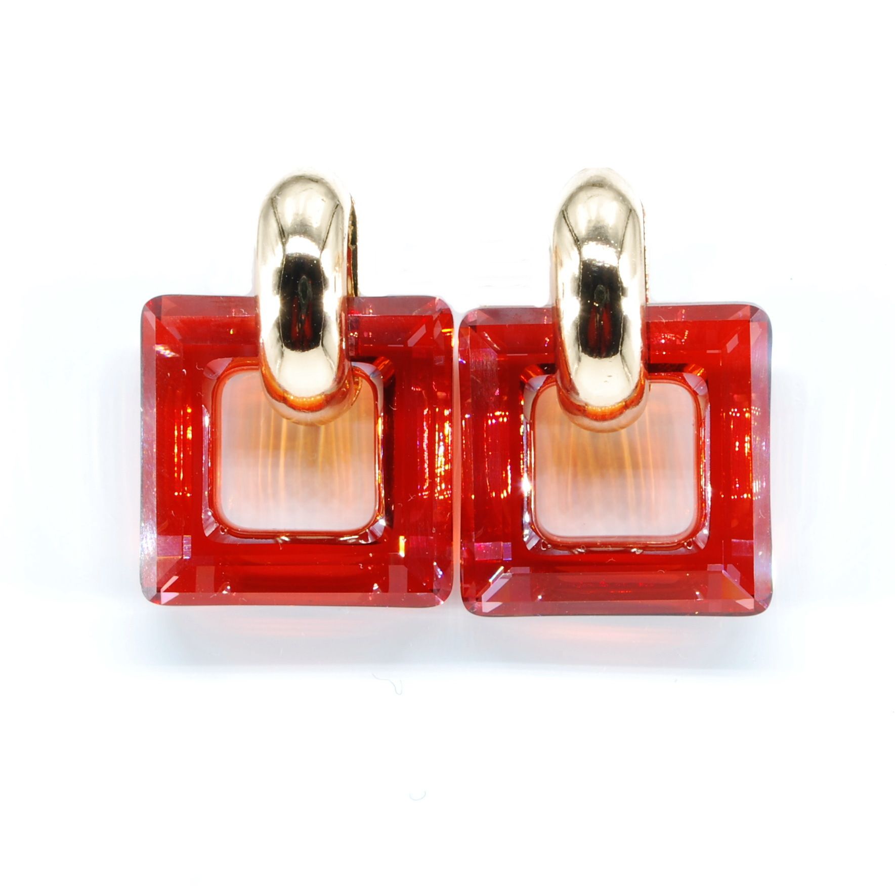 25051- ELEGANTNÉ napichovacie náušnice - Štvorec Red Magma